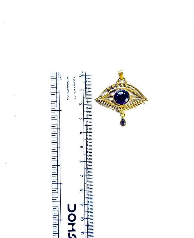 Blue Gemstone Eye Brass Pendant