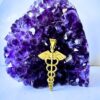 This striking pendant showcases the iconic Caduceus, a symbol often associated with healing, medicine, and transformation. Handcrafted from golden brass, the design features a winged top merging into a stylized vertebral column, making it especially meaningful for chiropractors, doctors, therapists, or anyone drawn to symbols of health and regeneration.