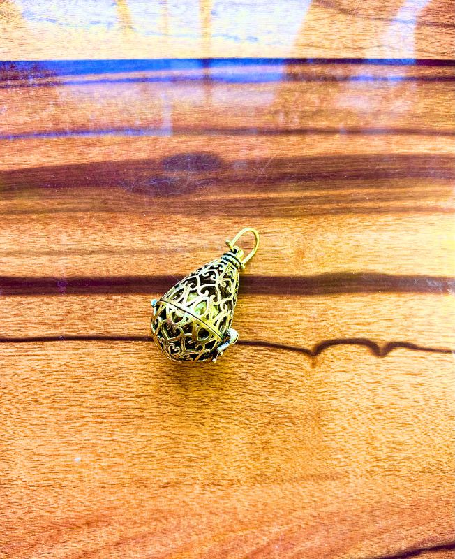 This elegant teardrop brass pendant showcases beautifully detailed filigree work, giving it a light, airy structure while maintaining its vintage charm. The hollow cage-style design features a functional hinge and clasp, allowing the pendant to open and close securely. Perfect for holding a small piece of scented material, a crystal, or a handwritten note, this pendant is a favorite for both spiritual and aesthetic jewelry creations.