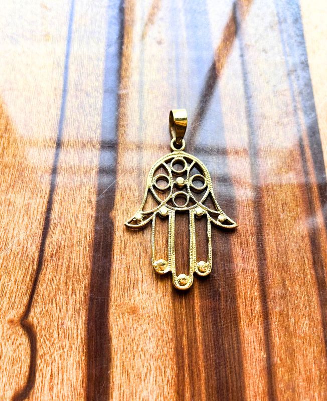 Brass Hamsa Hand Pendant with Protective Symbol of Luck and Harmony