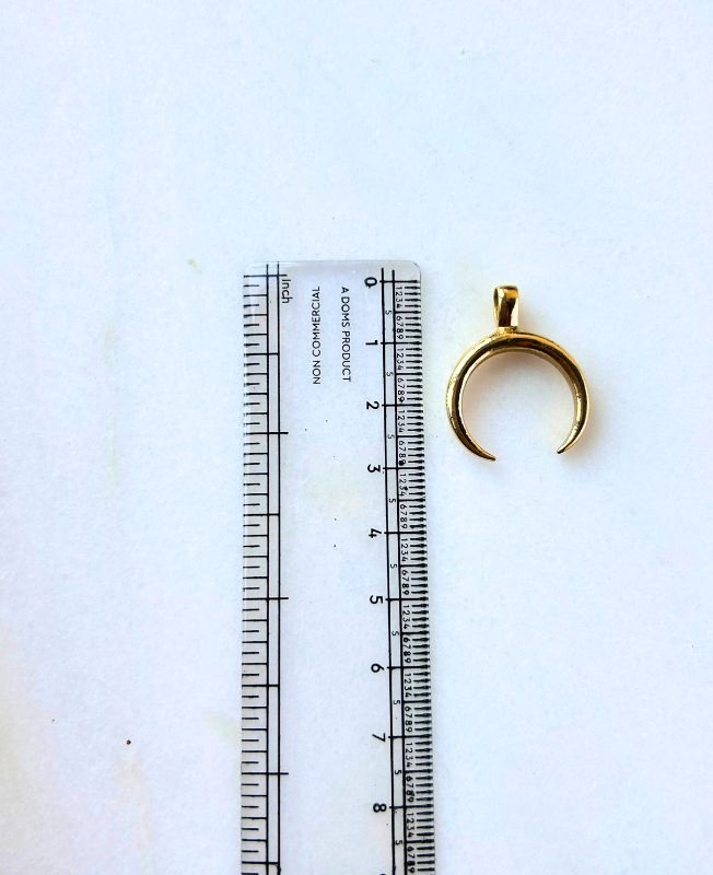 This handcrafted brass crescent moon pendant captures the mystique of lunar symbolism. Its minimalist design makes it a versatile choice for necklaces, earrings, or layered bohemian jewelry pieces. The smooth and polished finish reflects light beautifully, adding a touch of subtle shine to any creation. Ideal for those who love celestial motifs, this pendant symbolizes intuition, renewal, and feminine energy.