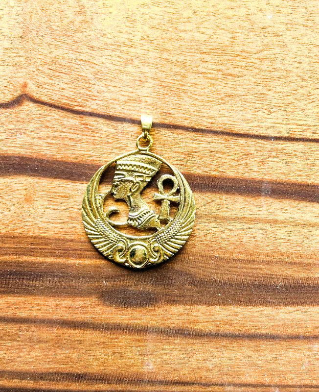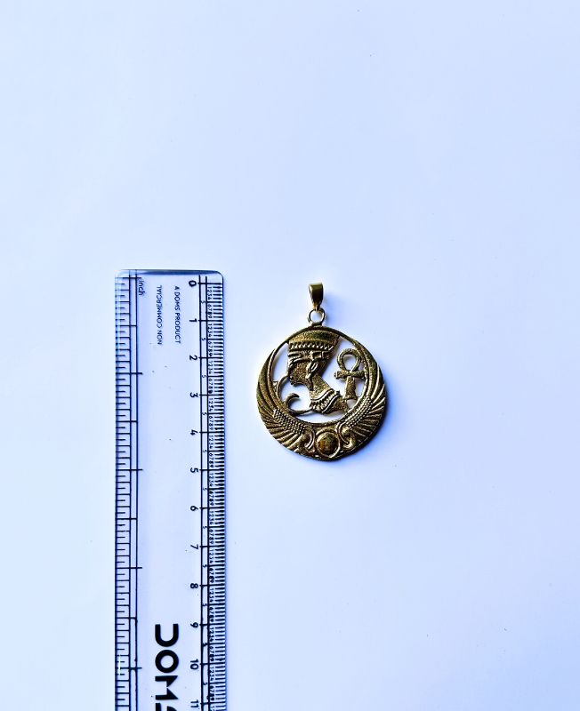 This elegant Egyptian Goddess Brass Pendant captures the timeless beauty and mysticism of ancient Egypt. Crafted in warm golden brass, it depicts a winged goddess holding the ankh—the sacred symbol of life and divine power. The detailed engraving and circular frame add depth and authenticity, making it an ideal centerpiece for necklaces, talismans, or mixed-metal jewelry pieces. Its vintage finish gives a handcrafted, artisanal character suitable for both spiritual collections and bohemian styles.