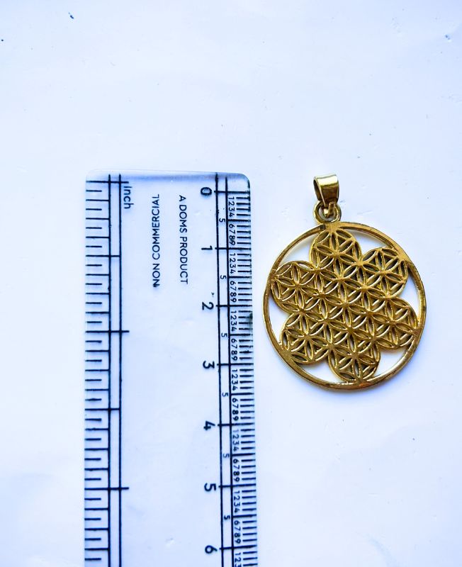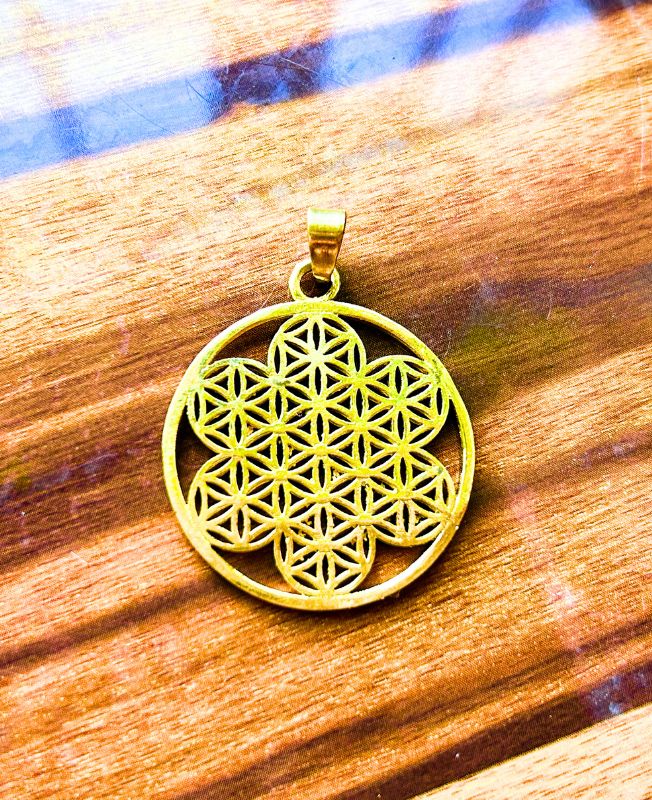 Intricately crafted brass pendant featuring the ancient Flower of Life design. A powerful symbol of creation and unity, perfect for spiritual jewelry collections.