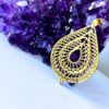 The pendant is crafted from warm golden brass and features a sturdy bail loop that can accommodate a variety of chain or cord thicknesses. This piece is ideal for centerpiece designs in bohemian, tribal, or ethnic-inspired collections. Each pendant is handmade and may show slight variations, adding to its unique artisanal character.