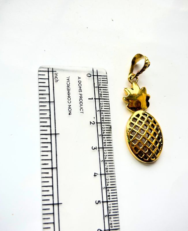 Fun and tropical pineapple shaped pendant in golden brass with intricate cutout details. Lightweight, eye-catching and full of personality.