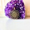 Intricately crafted brass pendant inspired by the Flower of Life geometry pattern symbolizing unity, creation, and spiritual harmony.