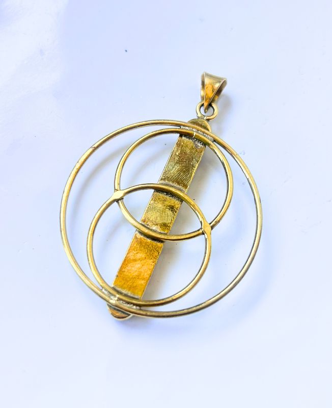 Sacred Geometry Chakra Brass Pendant With Double Circle Frame
