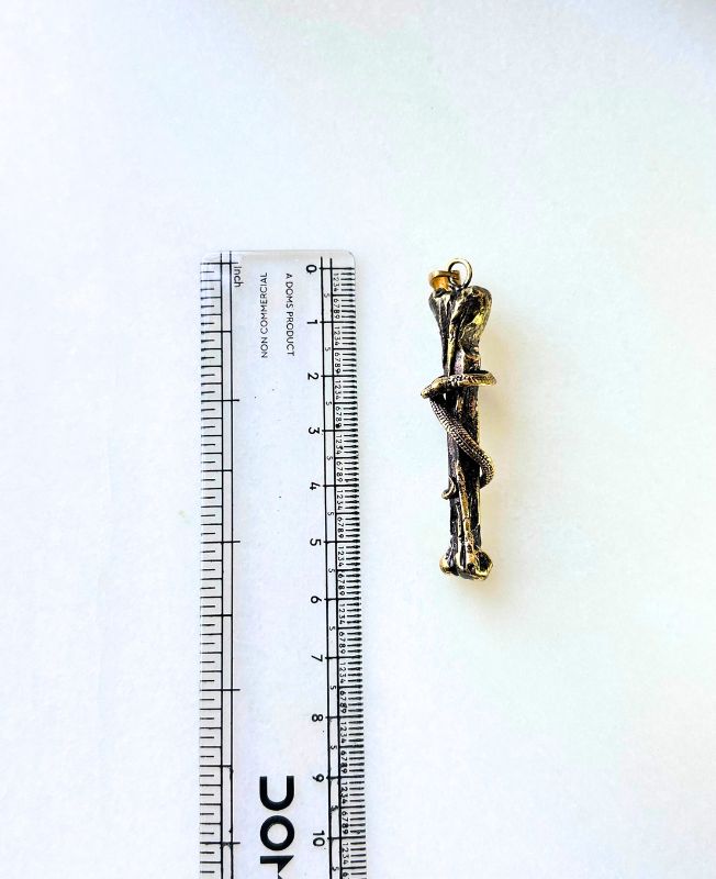 This striking brass pendant features a detailed design of a snake elegantly wrapped around a bone form, embodying the symbolism of life, death, and renewal. Crafted from solid brass with a lightly aged finish, it captures a raw, powerful aesthetic that appeals to lovers of gothic, tribal, or symbolic jewelry. The pendant’s length makes it a bold statement piece suitable for both necklaces and mixed-material jewelry designs. Perfect for artisans, collectors, and those seeking meaningful talismanic jewelry.