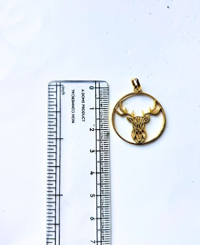 The intricate lines of the stag are enhanced by the antique gold finish, which lends a vintage and earthy feel to the piece. The pendant includes a sturdy bail at the top, allowing for easy attachment to chains, cords, or beaded strands. Whether used in nature-inspired jewelry collections, tribal art, or minimalist unisex designs, this pendant offers timeless appeal and versatile use.