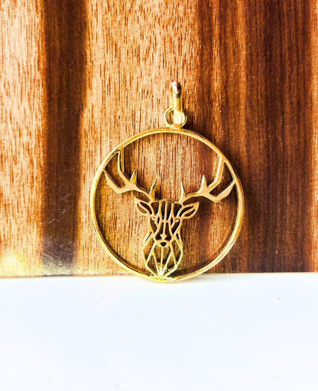 Elegant brass pendant featuring a majestic stag head within a round frame. A symbol of strength and nature, perfect for statement jewelry or tribal-inspired pieces.