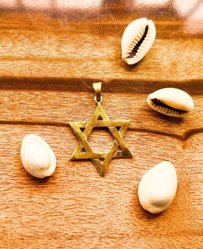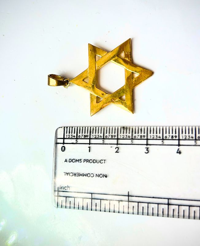 This striking brass pendant features a bold Star of David design, crafted with clean lines and a geometric openwork style. Symbolic and elegant, it works beautifully in both spiritual and modern jewelry collections. The raw brass finish adds a warm vintage touch that suits a variety of necklace cords or chains. Perfect for those seeking meaningful, symbolic adornments with artisanal charm.