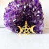 Symbolic brass pendant featuring the Triple Moon Goddess design with a central pentacle, representing the cycles of life and divine feminine energy. Ideal for spiritual jewelry collections or boho-style creations.
