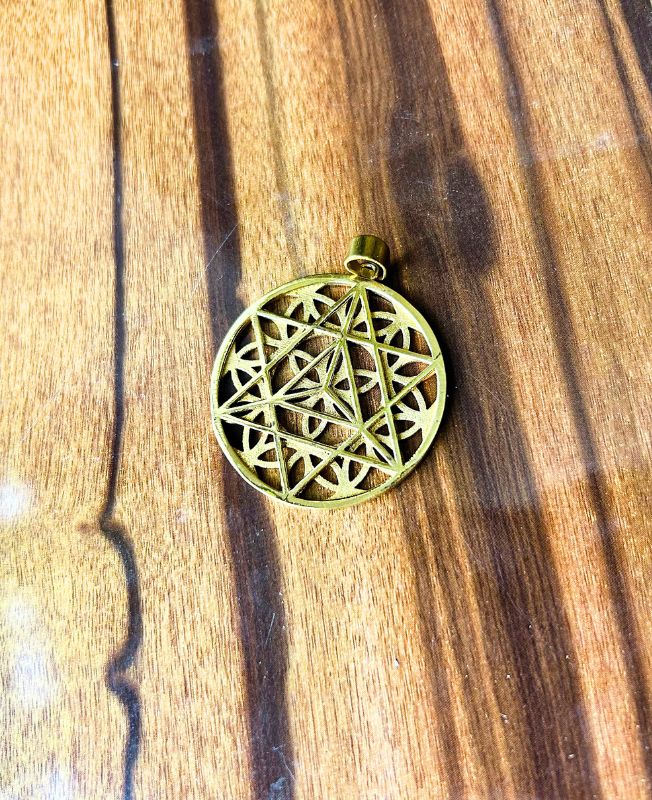 This intricately crafted Flower of Life pendant is made from solid brass with a smooth antique finish. The symmetrical geometric pattern, known for its spiritual symbolism of creation and unity, makes this piece ideal for those drawn to sacred geometry and meaningful jewelry.