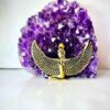 This striking brass pendant depicts the Egyptian goddess Isis in her classic winged form. With her arms and wings outstretched, the goddess symbolizes protection, divine femininity, and mystical power. The design is cast in warm antique-finish brass, offering both a vintage feel and modern versatility.