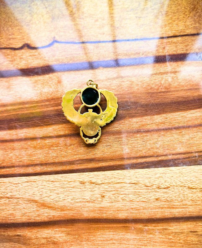 Brass Winged Scarab Beetle Pendant with Green Stone