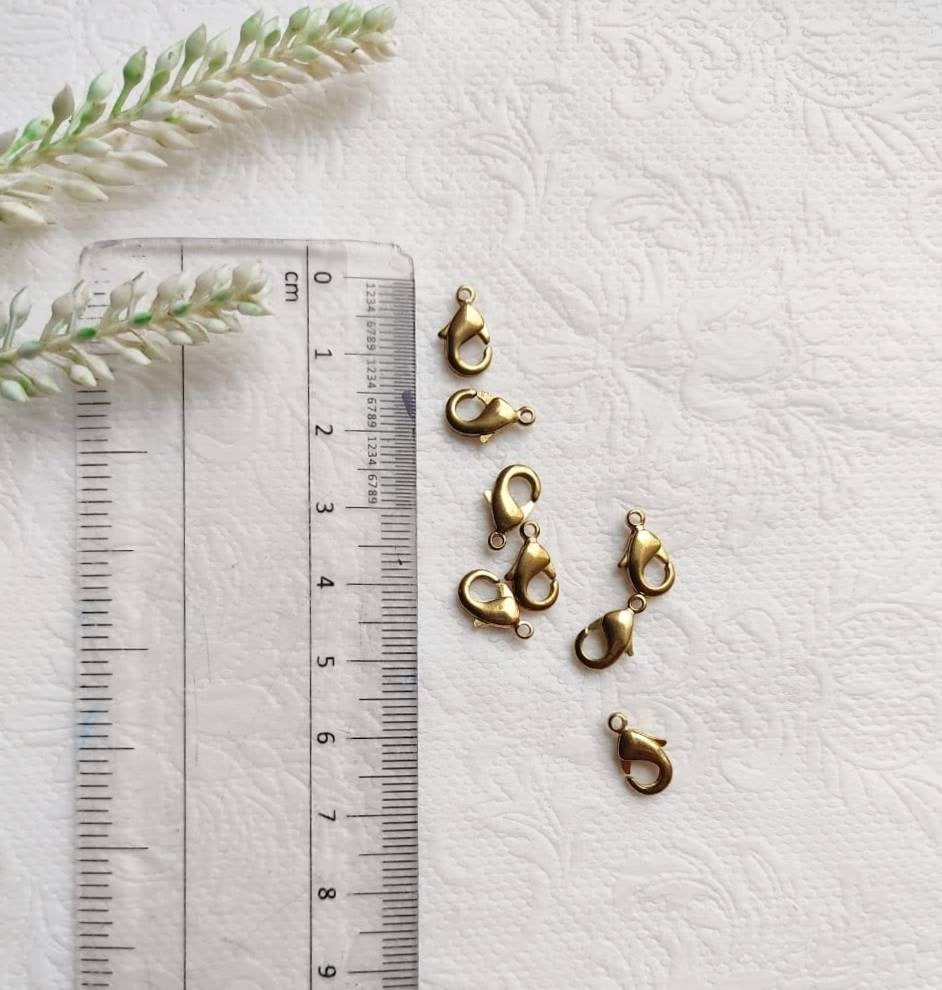 Durable brass lobster clasps in a warm golden tone. Perfect for creating secure closures in bracelets, necklaces, and other handmade jewelry.