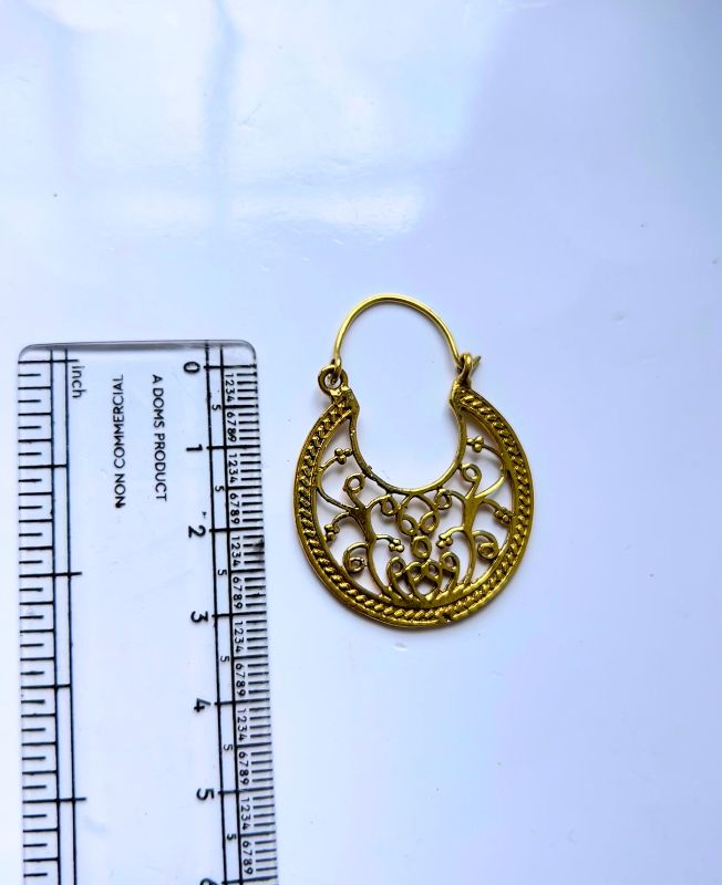Add a touch of timeless elegance to your jewelry line with these Ornate Filigree Brass Hoop Earrings. Designed in a graceful crescent silhouette, each earring is adorned with elaborate scrollwork and floral-inspired filigree, framed by a twisted rope edge that enhances its antique character.