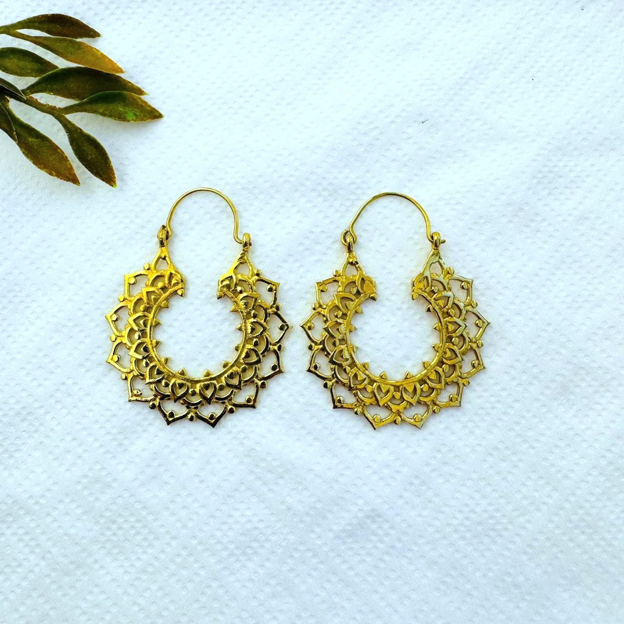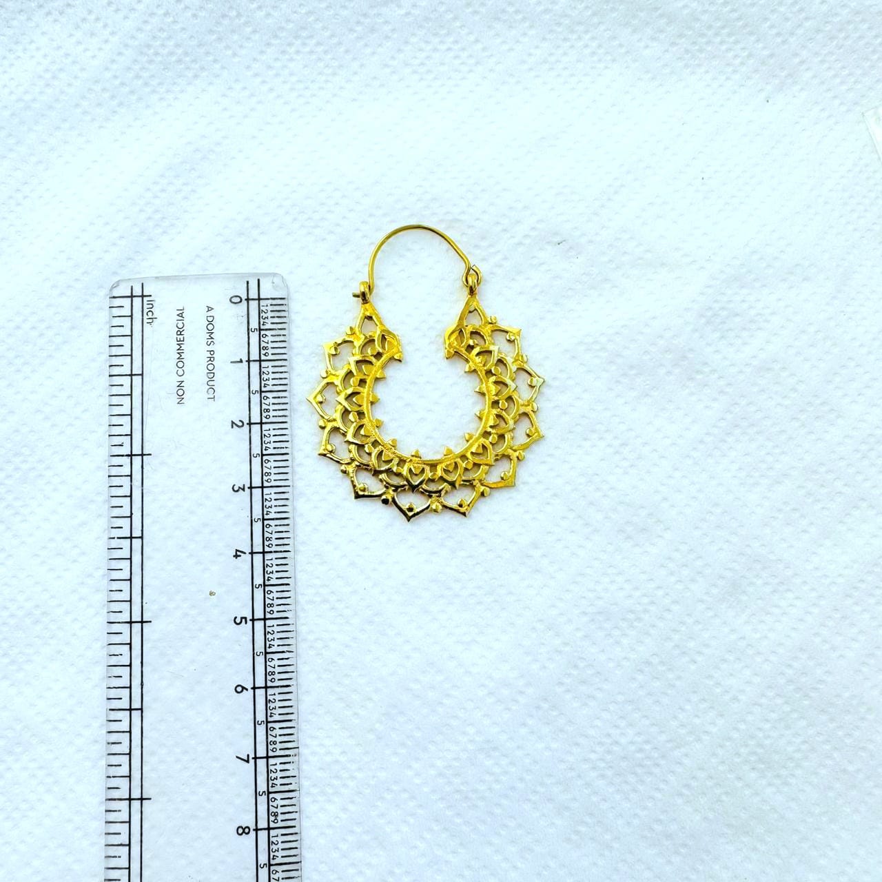 These ornate mandala brass earrings feature a beautifully layered openwork design inspired by traditional mandala and lace motifs. The repeating geometric and floral elements create depth, texture, and a refined handcrafted look while remaining lightweight and wearable.