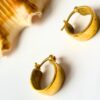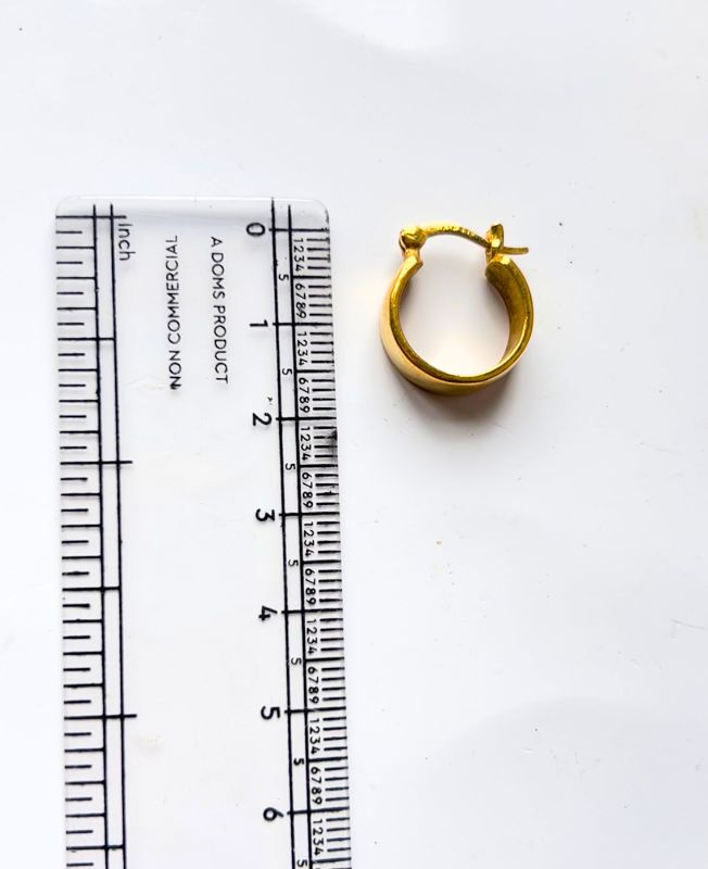 These classic golden hoop earrings feature a smooth polished surface and a traditional locking mechanism commonly found in Indian jewelry. The slightly thick band adds a bold yet refined touch, making them ideal for both casual and festive wear. Crafted from high-quality brass with a warm gold tone finish, these hoops offer both durability and aesthetic appeal. The traditional clasp is easy to use and ensures a secure fit throughout the day.