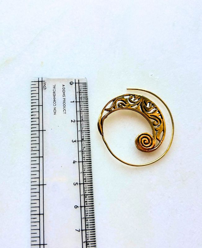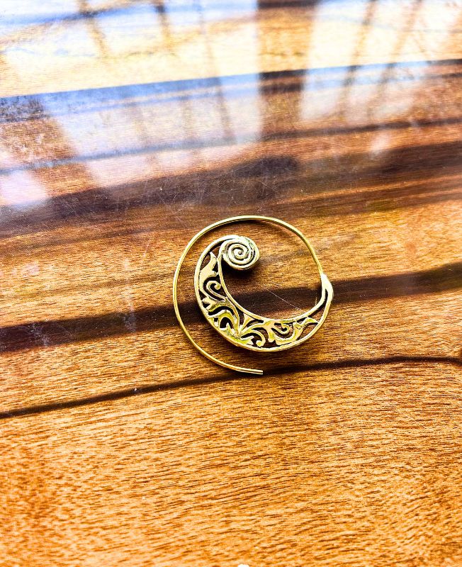 Elegant spiral filigree earring handcrafted in brass. This intricate swirl design combines traditional artistry with modern bohemian charm.