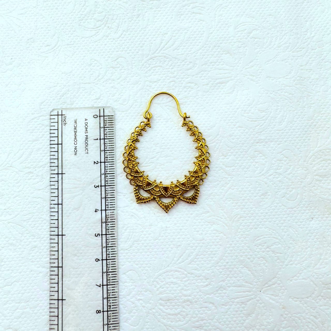 Handcrafted gold plated brass earring featuring with an intricate filigree crescent pattern with rich tribal detailing. Lightweight and perfect for a bold yet elegant look.