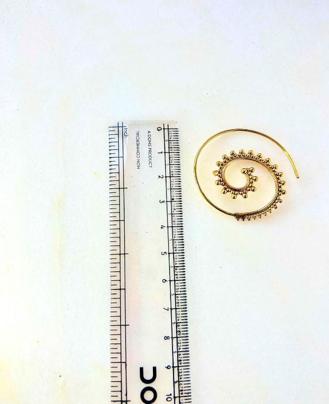 Elegant handcrafted brass spiral earrings with intricate dotted detailing. These boho-style spirals are lightweight and perfect for adding an ethnic, artistic touch to any outfit.