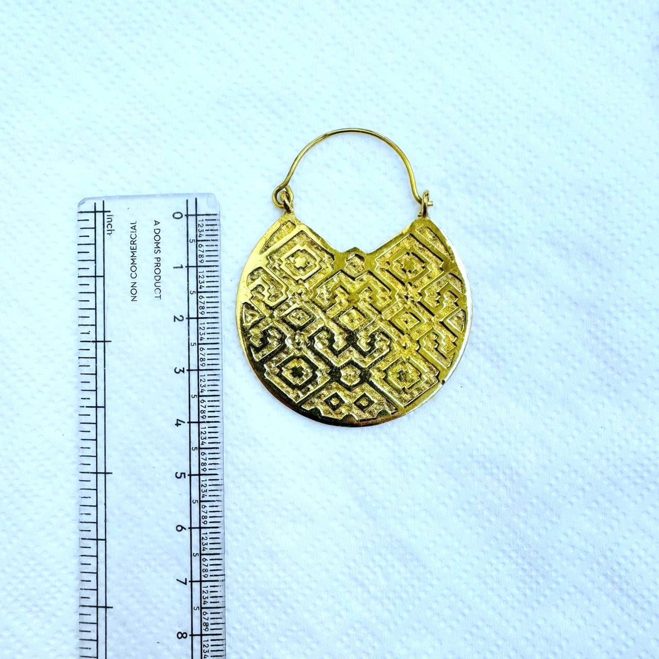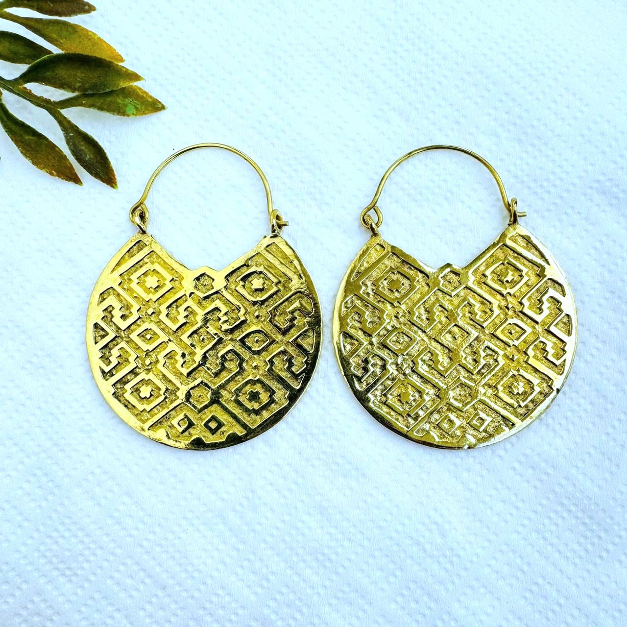 Handcrafted gold plated brass earring featuring an intricate geometric tribal patterns. Lightweight and perfect for a bold yet elegant look.
