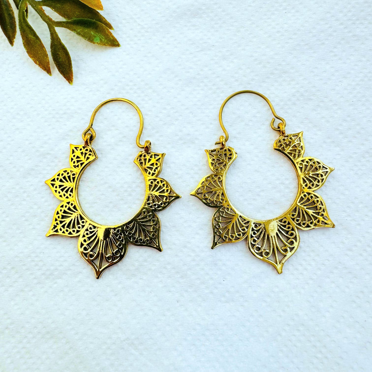 These beautiful brass lotus flower hoop earrings are inspired by the sacred lotus, a symbol of purity, balance, renewal, and inner growth. The design features delicately shaped petals arranged in a layered mandala form, with fine filigree detailing that adds depth and elegance.
