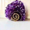 These handcrafted brass spiral mandala earrings are designed with delicate filigree work that spirals gracefully inward, forming a beautiful mandala pattern with tiny heart-petal motifs along the edge. The warm golden tone of the brass gives these earrings a rich, earthy appeal that complements both casual and festive looks.