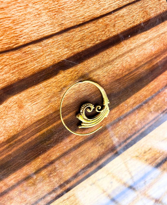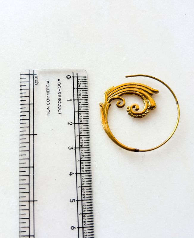 These handcrafted brass swirl filigree hoop earrings bring a harmonious balance of structure and flow. The detailed spiral motif is inspired by organic Art Nouveau lines, creating a bold yet graceful statement piece.