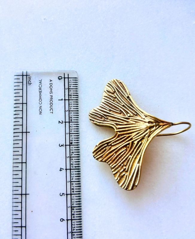 Elegant brass earrings inspired by the natural form of the ginkgo leaf, featuring intricate vein detailing that captures its organic beauty.