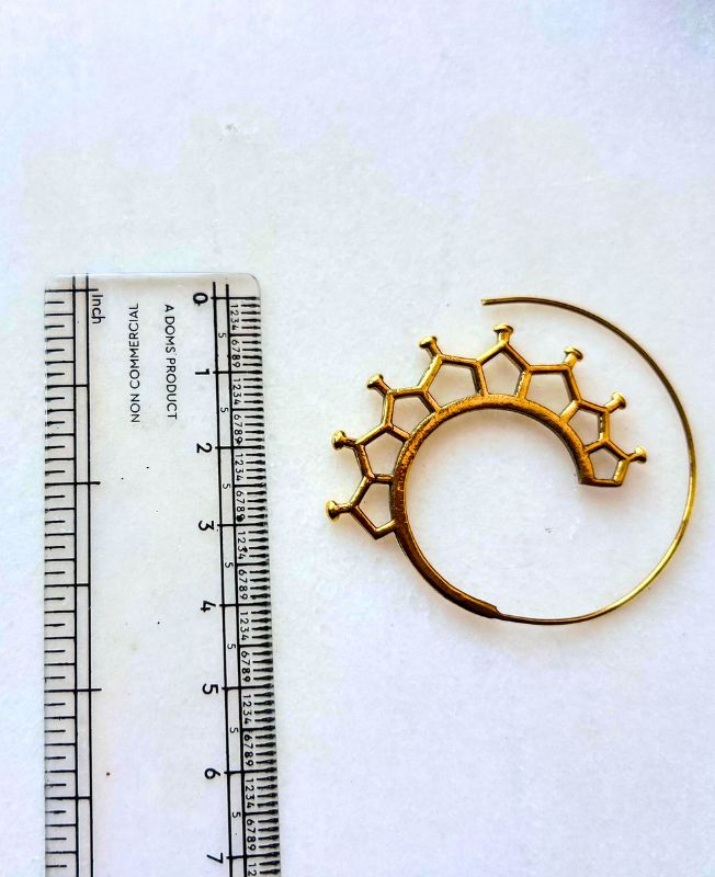This stunning brass earring features a detailed honeycomb geometric design, symbolizing harmony and connection. Carefully handcrafted from premium-quality brass, it combines strength with elegance, making it ideal for both casual and statement wear. The open circular pattern allows light to pass through beautifully, highlighting its intricate structure.