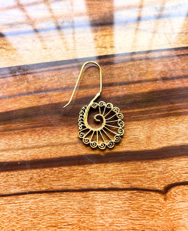 Elegant brass spiral earrings with intricate filigree design lightweight, artistic, and full of bohemian charm.