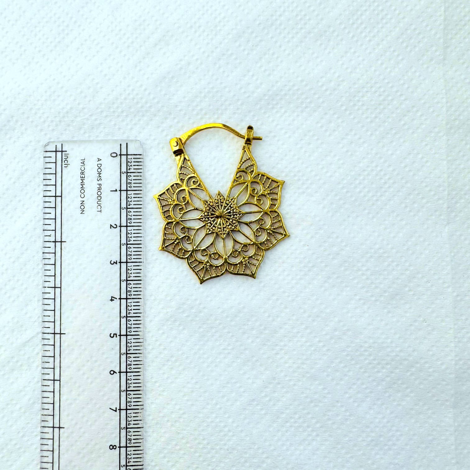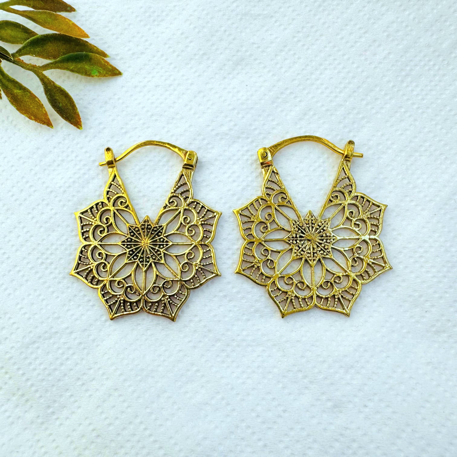 These stunning mandala flower brass earrings feature a highly detailed openwork design inspired by sacred geometry and traditional floral motifs. The layered petal structure creates a radiant star-like mandala, combining symmetry, movement, and lightness.
