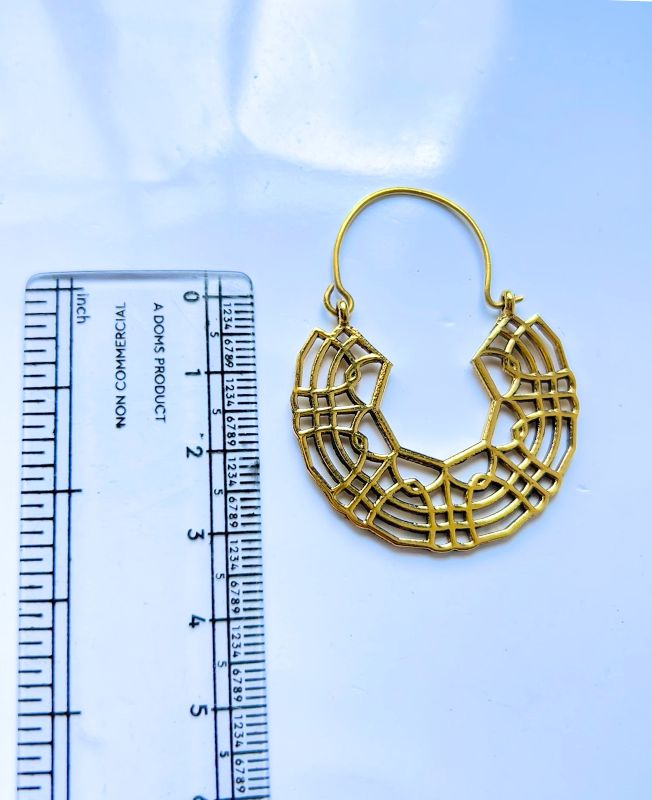 Geometric Tribal Brass Hoop Earrings With Lattice Web Design in Antique Gold for Jewelry Designs