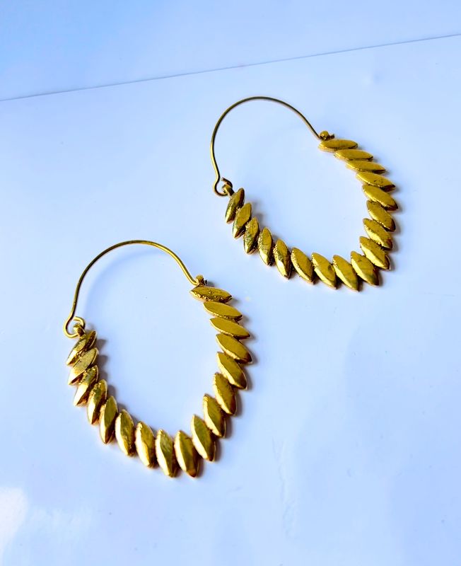 5 Pairs Laurel Leaf Hoop Brass Earrings