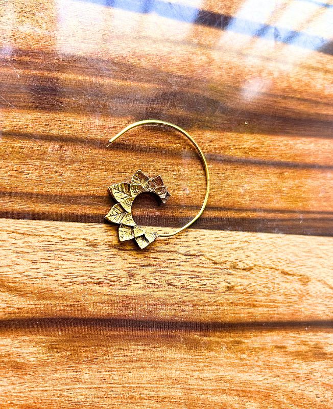 Intricately designed brass hoop earring inspired by tribal patterns. Lightweight and elegant, perfect for bohemian or ethnic styles.
