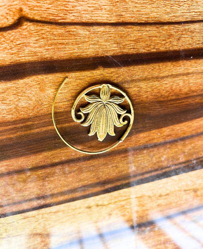 Brass Lotus Flower Spiral Earrings