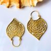 Elegant brass earrings with intricate lotus petal design, finished in a radiant gold tone. Perfect for bold boho or ethnic styles.