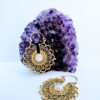 Handcrafted gold plated brass earring featuring a inspired by a luminous moonstone center. Lightweight and perfect for a bold yet elegant look.