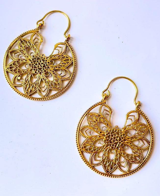 Gold Plated Mandala Bloom Tribal Earring With Floral Filigree for Bold Jewelry Designs
