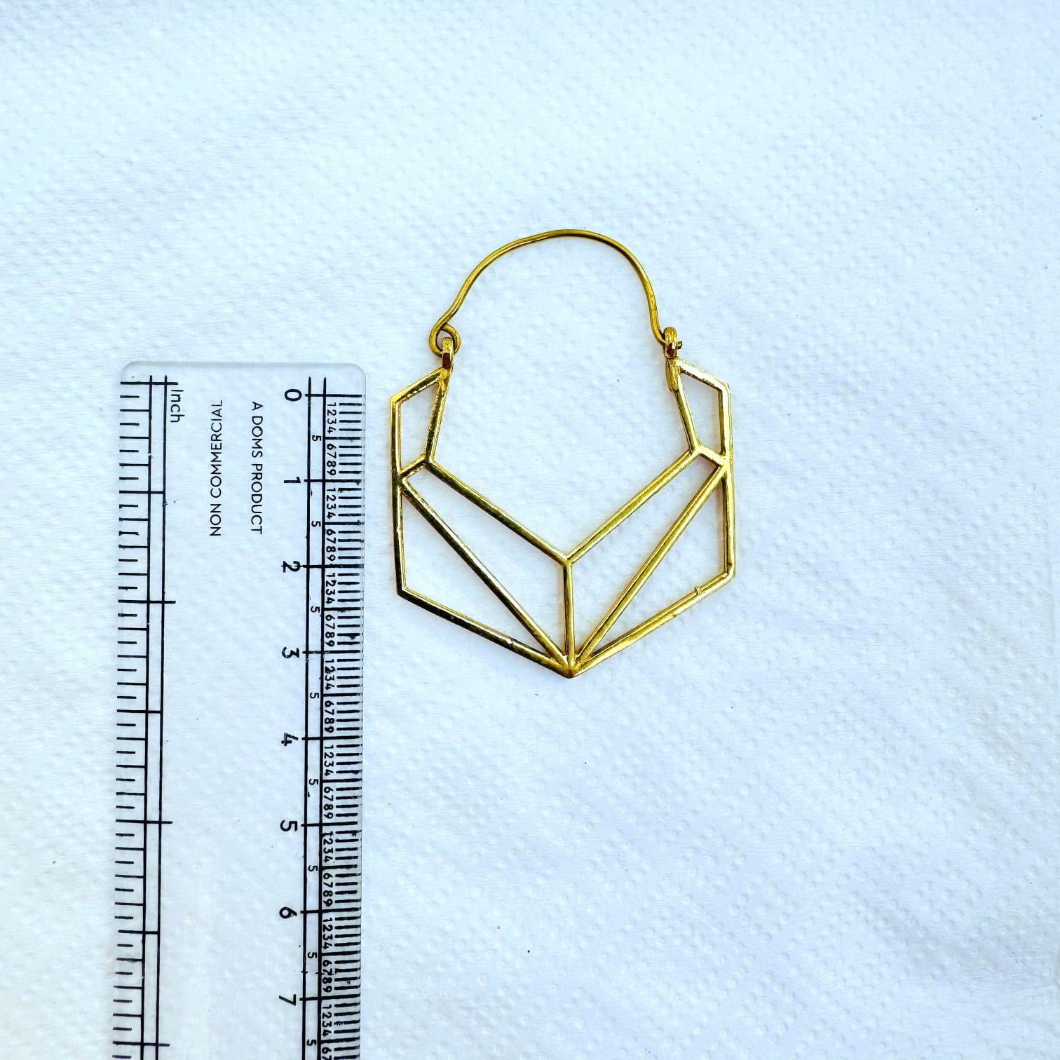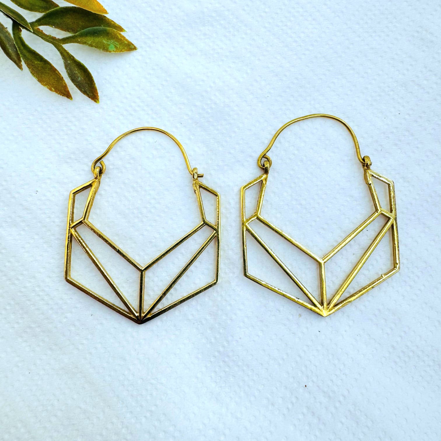 Handcrafted gold plated brass earring featuring with an angular V shape and open framework. Lightweight and perfect for a bold yet elegant look.