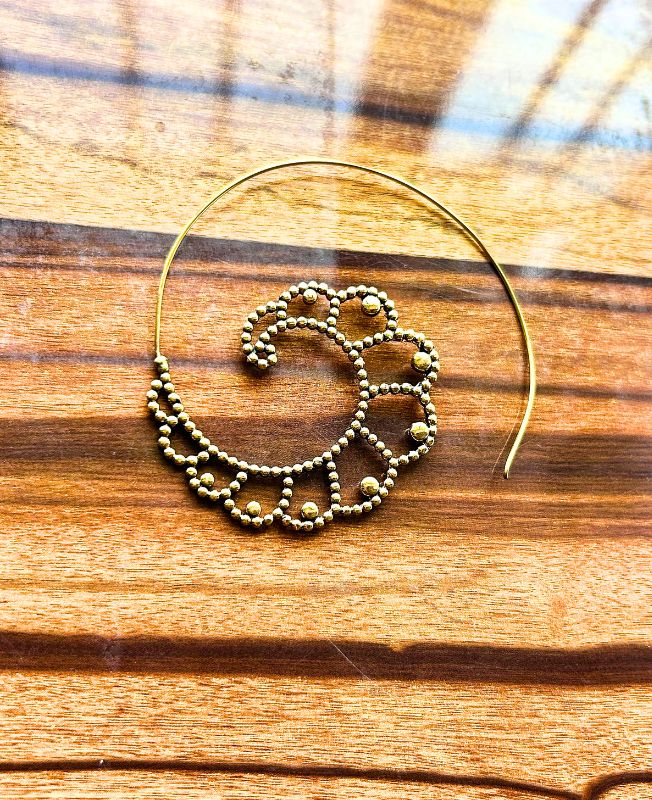 This exquisite brass spiral earring is inspired by traditional filigree artistry. Each curve is carefully crafted into a delicate spiral pattern that adds a graceful sense of motion and sophistication. Made of durable brass with a warm golden finish, it pairs effortlessly with both ethnic and modern outfits.
