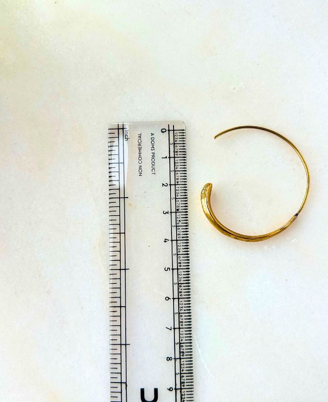 This open brass hoop earring showcases a sleek, handcrafted design with a gently curved band and a subtle textured surface that catches the light beautifully. Its open-ended structure gives it a modern twist on a classic silhouette, making it both lightweight and versatile.
