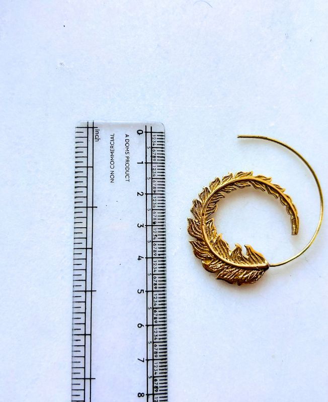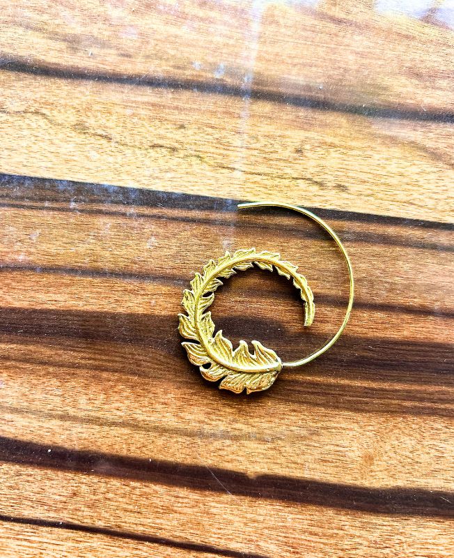 Elegant brass earrings shaped like a delicate leaf with intricate filigree detailing. Perfect for nature-inspired jewelry collections and bohemian looks.