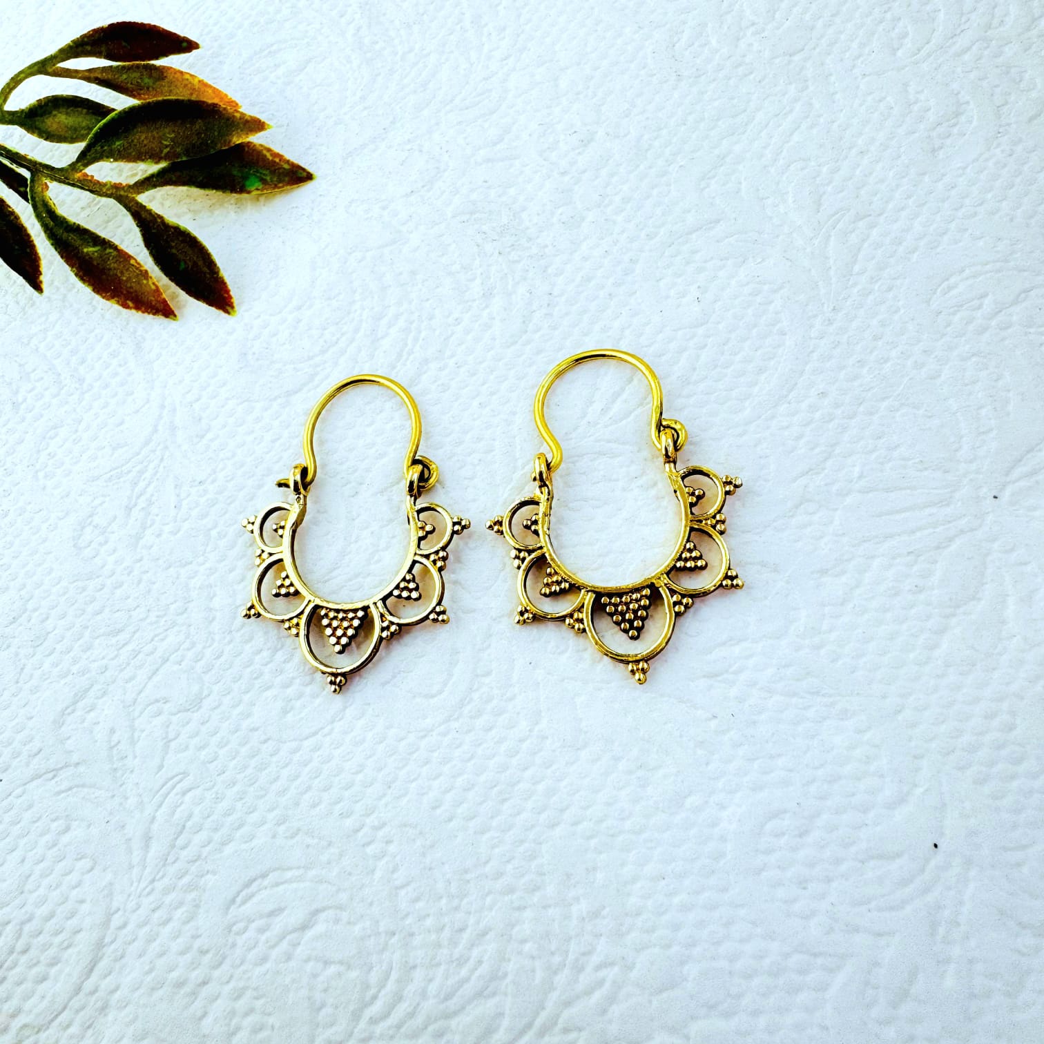 5/20 Pairs Ornate Mandala Hoop Brass Earrings