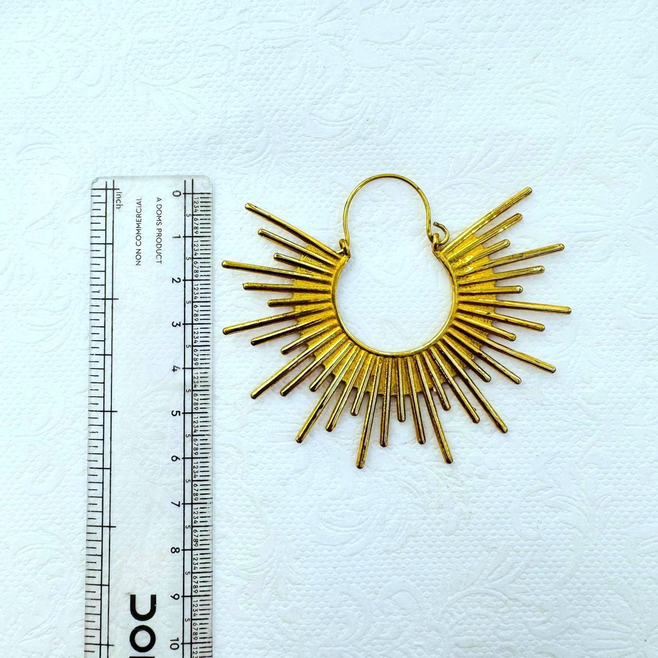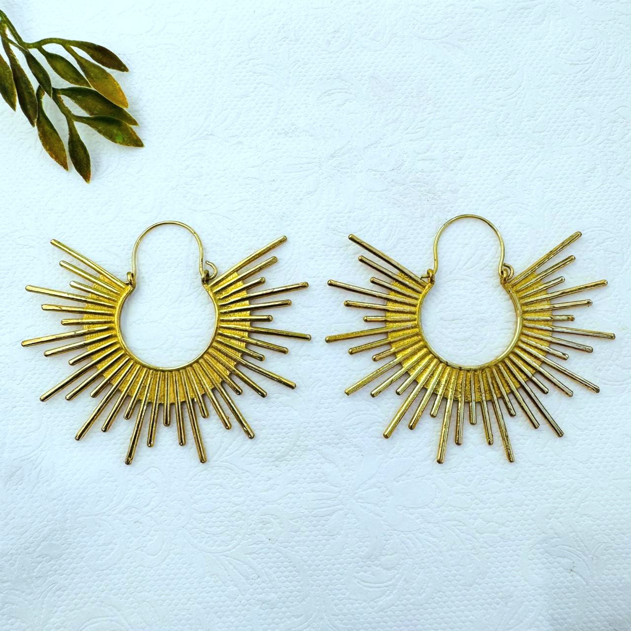 Handcrafted gold plated brass earring featuring an elongated sunray spikes for a powerful. Lightweight and perfect for a bold yet elegant look.
