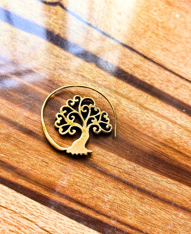 These stunning Tree of Life brass hoop earrings capture timeless symbolism and natural beauty. Meticulously crafted with intricate scrollwork branches and flowing roots, they represent harmony, strength, and eternal growth.
