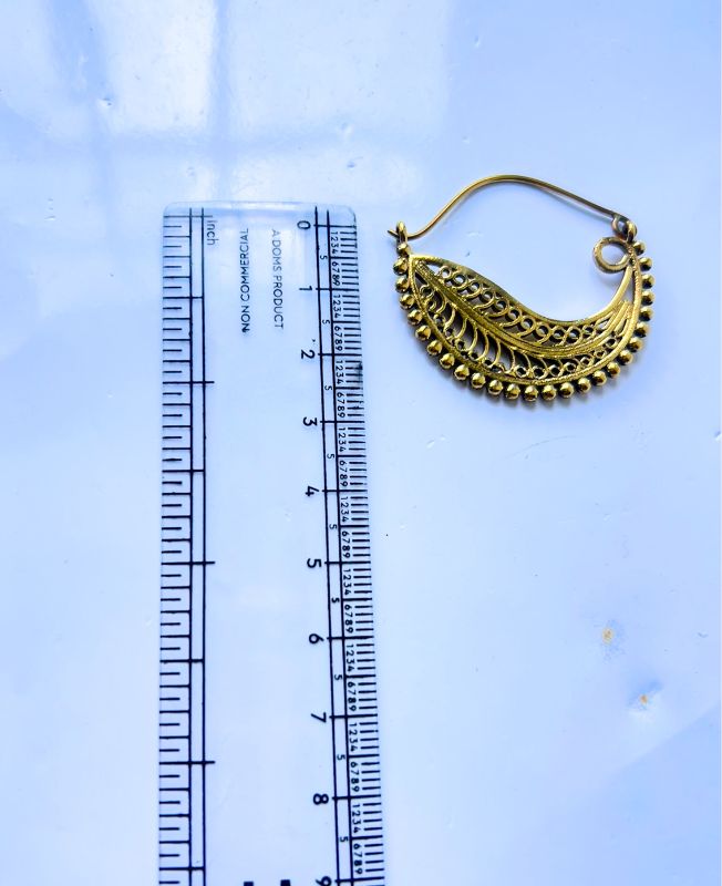 Handcrafted brass earrings featuring an intricate filigree swirl design adorned with tiny spherical accents. Lightweight, elegant, and perfect for both traditional and modern styling.