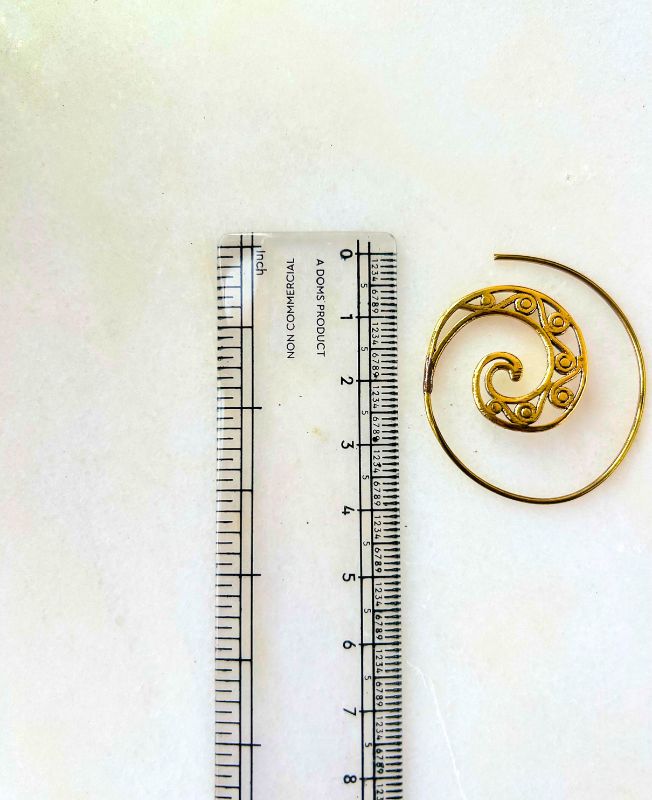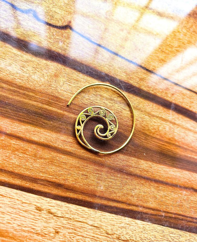 These brass spiral filigree earrings capture the essence of traditional tribal artistry. Each earring is carefully shaped into a smooth spiral, with delicate cutout detailing that gives it a unique handcrafted character. The design symbolizes balance and continuity, making it both a fashion piece and a spiritual statement.